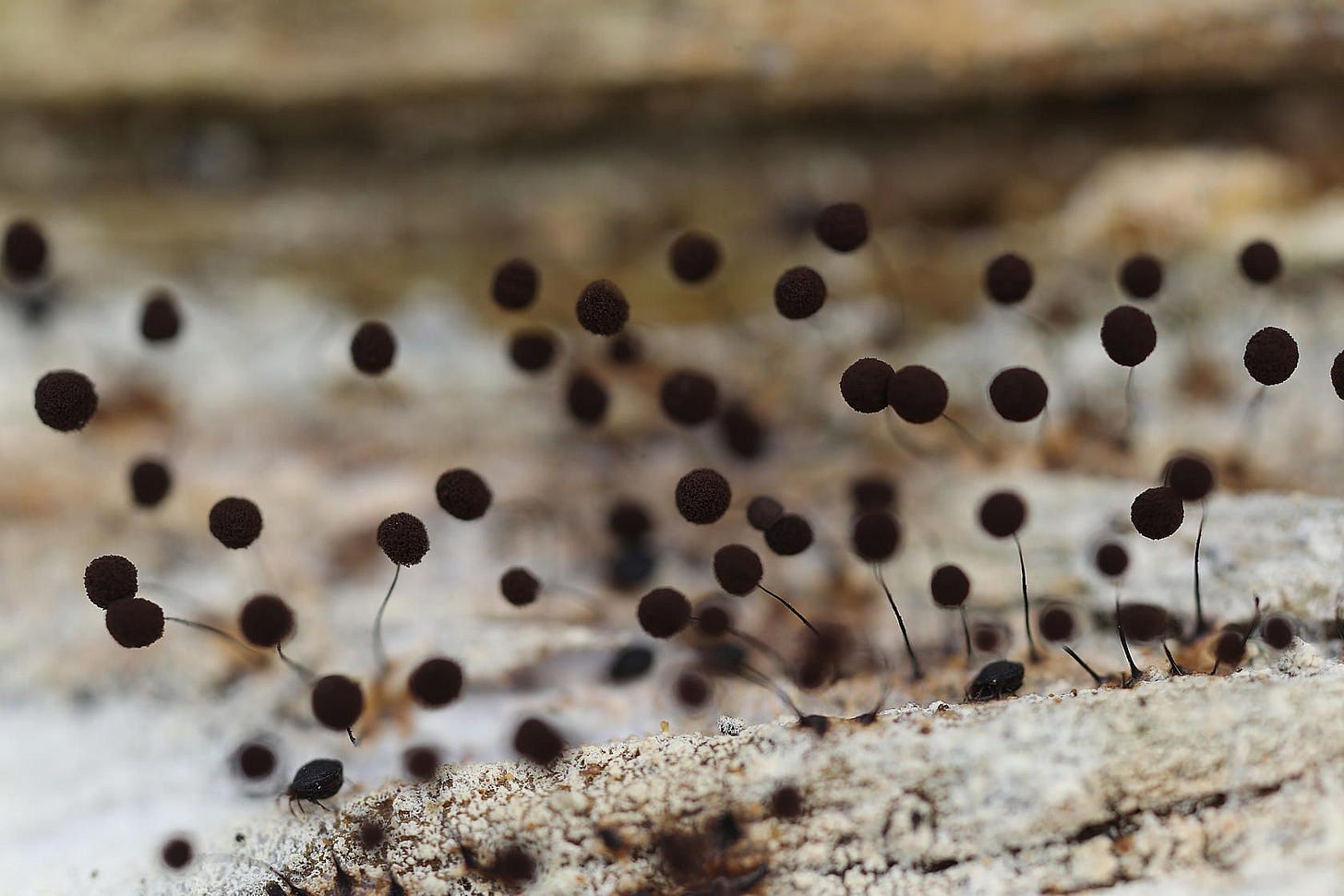To conclude this weekβs edition, rewilding legend and Trees for Life founder Alan Watson Featherstone shares with us a bit of his iconic photography that often takes a look at nature in a way thatβs far closer to what we ordinarily perceive in passing. Alan takes time - as we all should. What on Earth is the below, you might ask yourself. Well, Alan has the answer: βThese are the sporocarps of a slime mould (Comatricha nigra) on an old pine log (Pinus sp.) Slime moulds spend most of their lives as single-celled organisms in their substrate (dead wood in this case) before coalescing to form a plasmodium that can flow across its substrate and then produce these remarkable sporocarps - the fruiting bodies that release the slime mould's spores. These organisms help to break down and decompose old organic matter (the dead wood here) and are beautiful and fascinating in their life cycles. However, they desperately need a better name than 'slime mould', both words of which have negative connotations for most people!β
