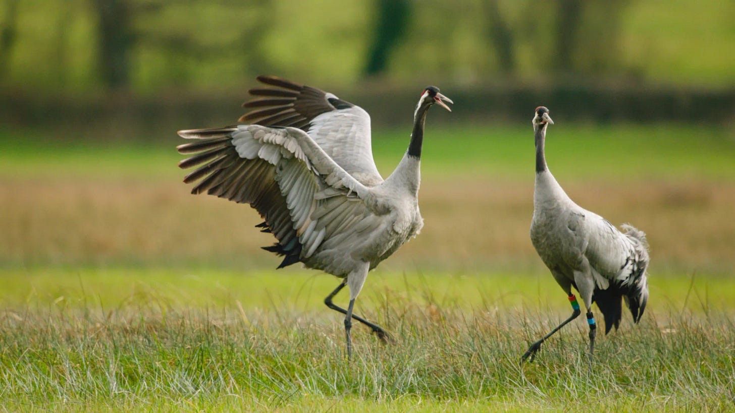 The RSPB writes that the return of the common crane also happens in England, and there in bigger numbers: “Cranes first recolonized the UK in 1979, when a small number of birds from mainland Europe were spotted in Norfolk. Since then, their numbers have increased with the birds also having a record-breaking year in the rest of the UK with a total of 87 pairs raising 37 chicks.”