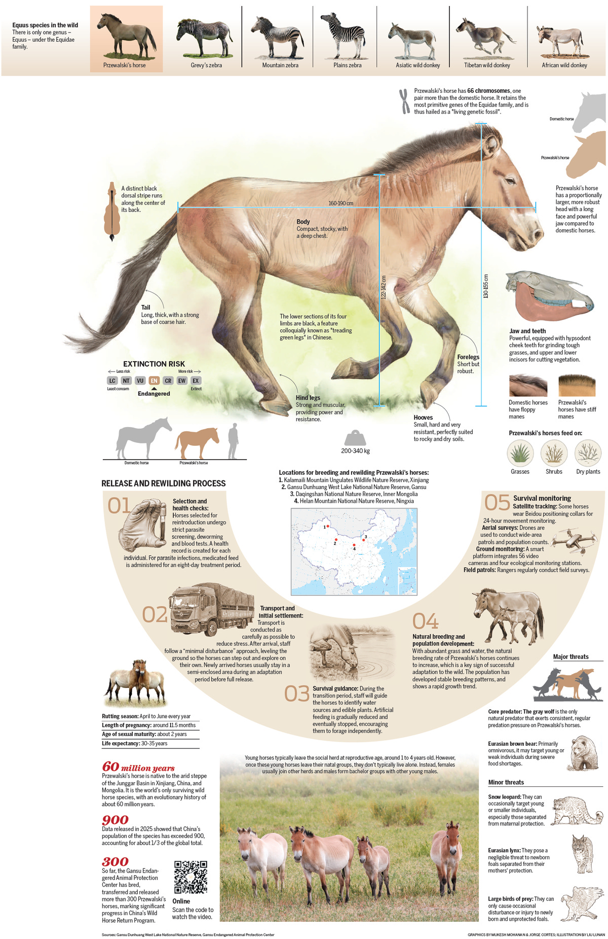 China started its “Wild Horse Return Program” forty years ago - and now they’re celebration that anniversary by highlighting the success of its breeding programs. They write, “The Przewalski’s horse — the world’s only surviving wild horse species — has completed a historic transition from being on the brink of extinction to there being self-sustaining wild herds in Northwest China. The population of Przewalski’s horses in China has surpassed 900 individuals, accounting for approximately one-third of the global total.”