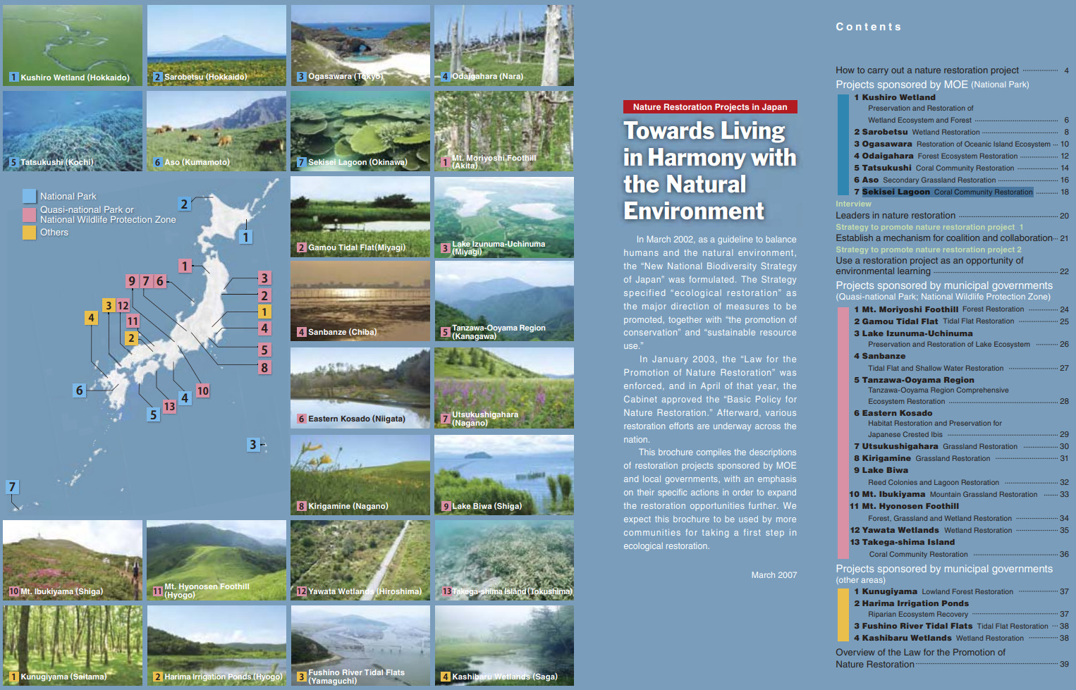 I found a hopeful looking document from 2007, entitled “Towards Living in Harmony with the Natural Environment. As the below image shows, this document highlights 24 nature restoration projects in Japan.